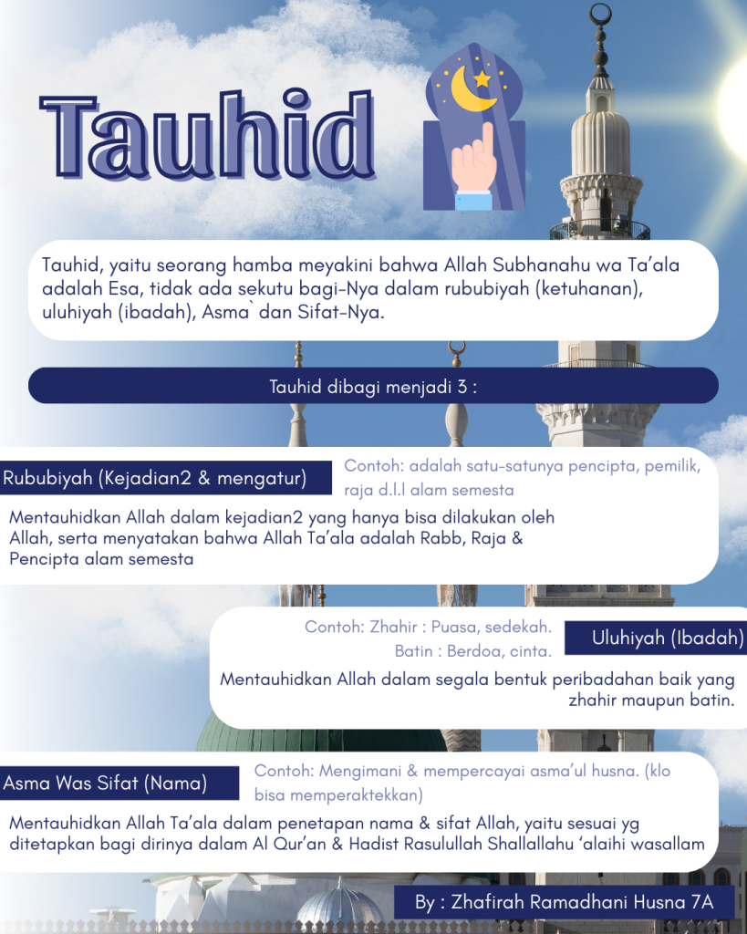 Tauhid itu dasar iman kita, lho! Dengan mengenal Rububiyah, Uluhiyah, dan Asma wa Sifat, kita jadi lebih paham bahwa cuma Allah satu-satunya yang pantas disembah dan tempat bergantung. Simak poster berikut untuk mengetahui lebih lanjut!⏭️💫